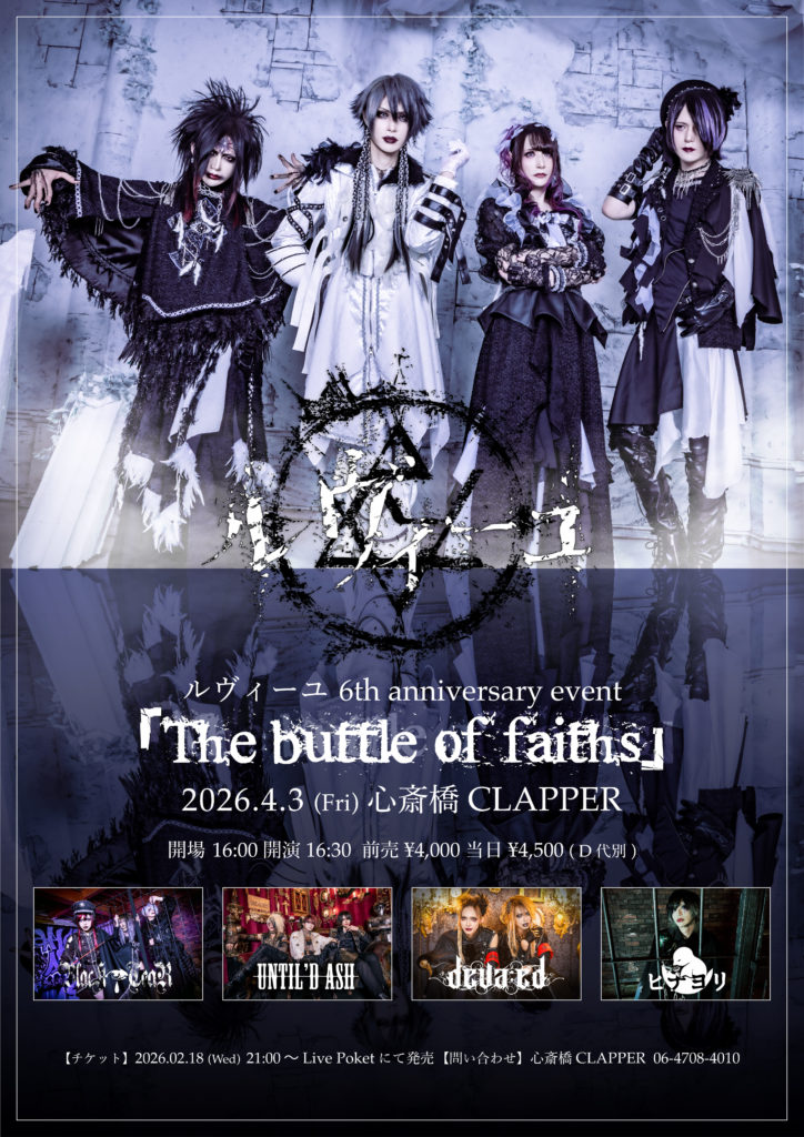 2026年04月03日(金) 心斎橋CLAPPER ルヴィーユ 6th anniversary event 「The buttle of faiths」